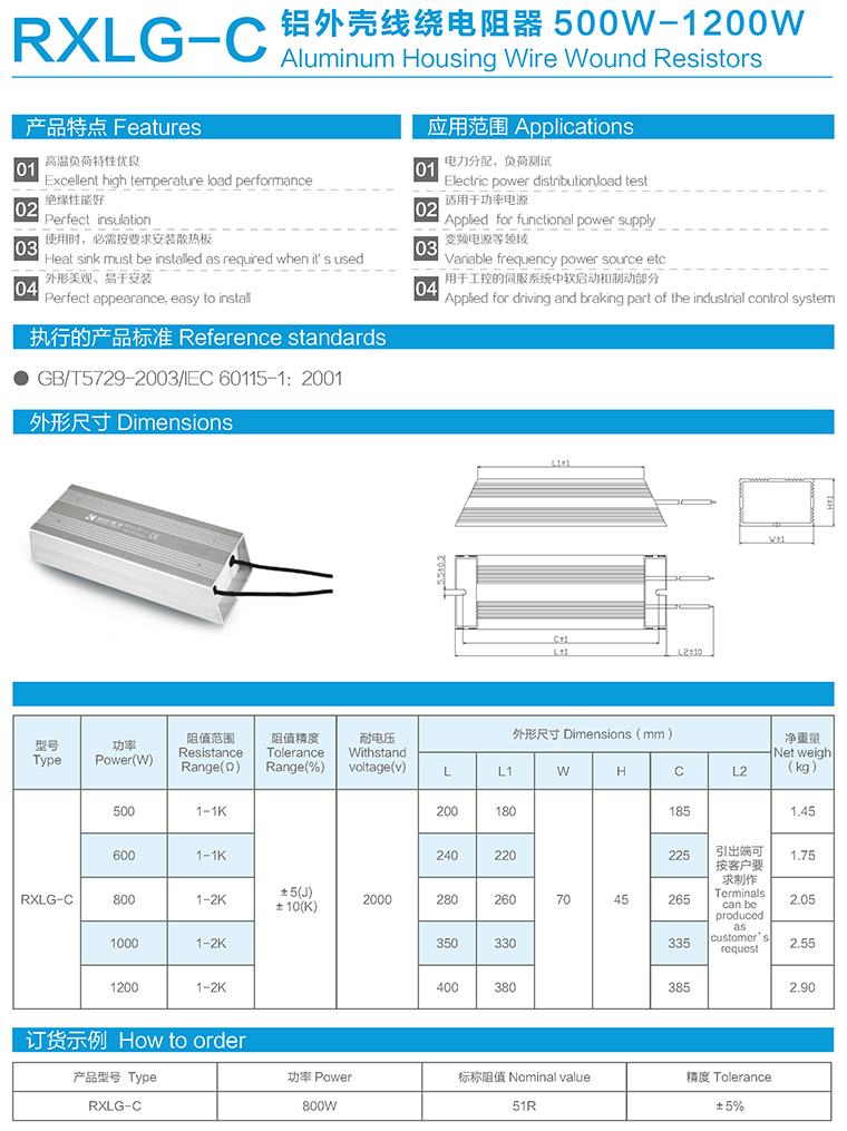 RXLG-C型铝外壳线绕电阻器