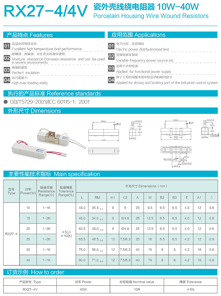 RX27-4/4V型瓷外壳线绕电阻器